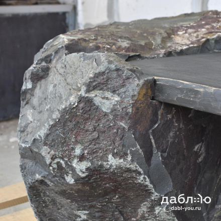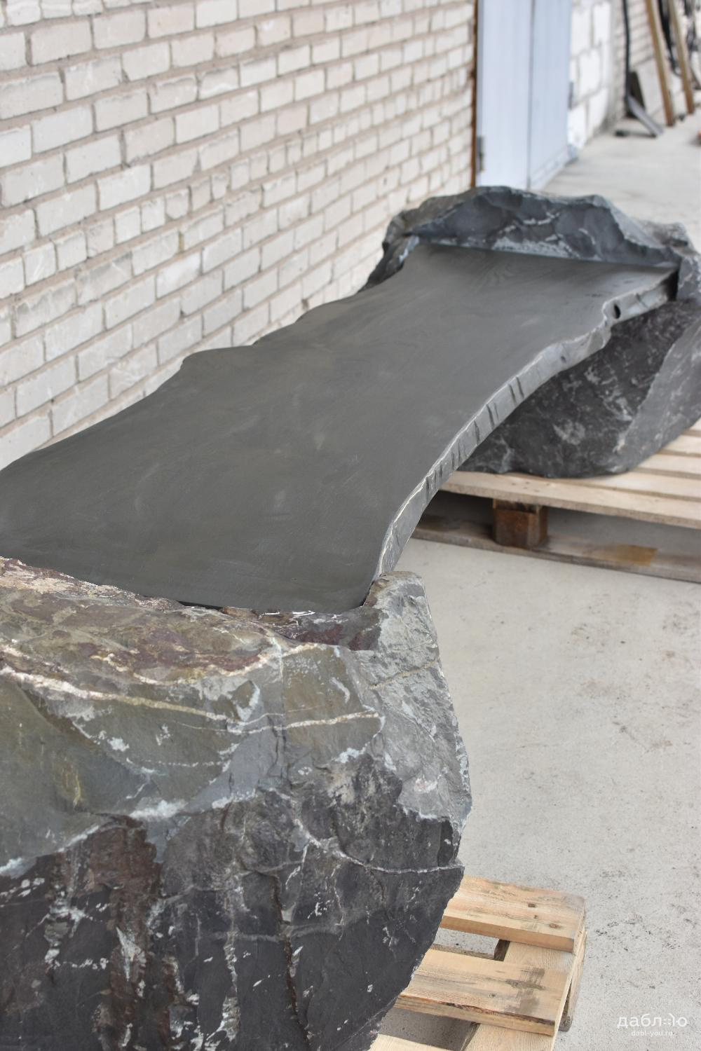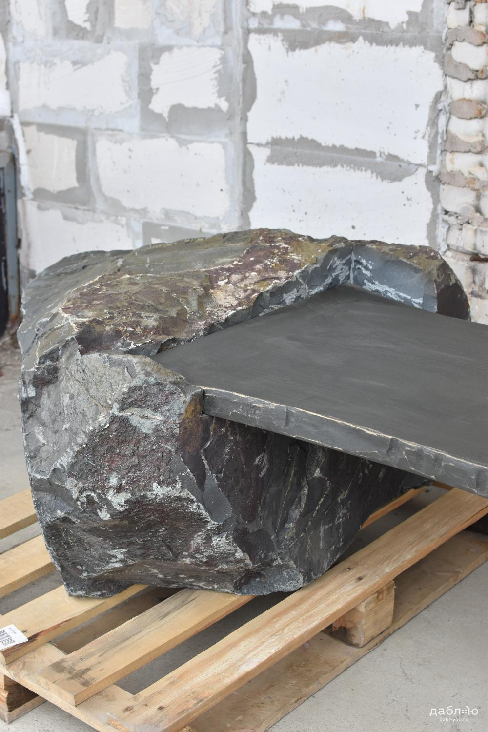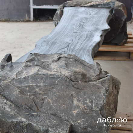 Скамейка из валунов №3. Скамья изготовлена из специально подобранного дерева и валунов под Ваши вкусы.