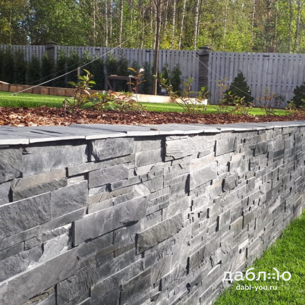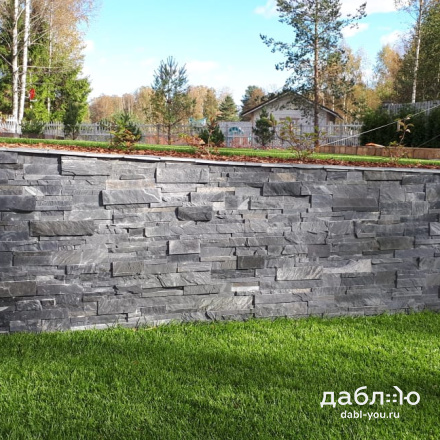 Сланец графит полоска торцованая В 30/60/90хпогон. Сланец считается экологически чистым материалом, поэтому его можно использовать как на фасаде Вашего дома, так и внутри помещений. Черный цвет камня выглядит очень изящно и благородно и легко сочетается с другими материалами.- Вес: 50 кг/м2