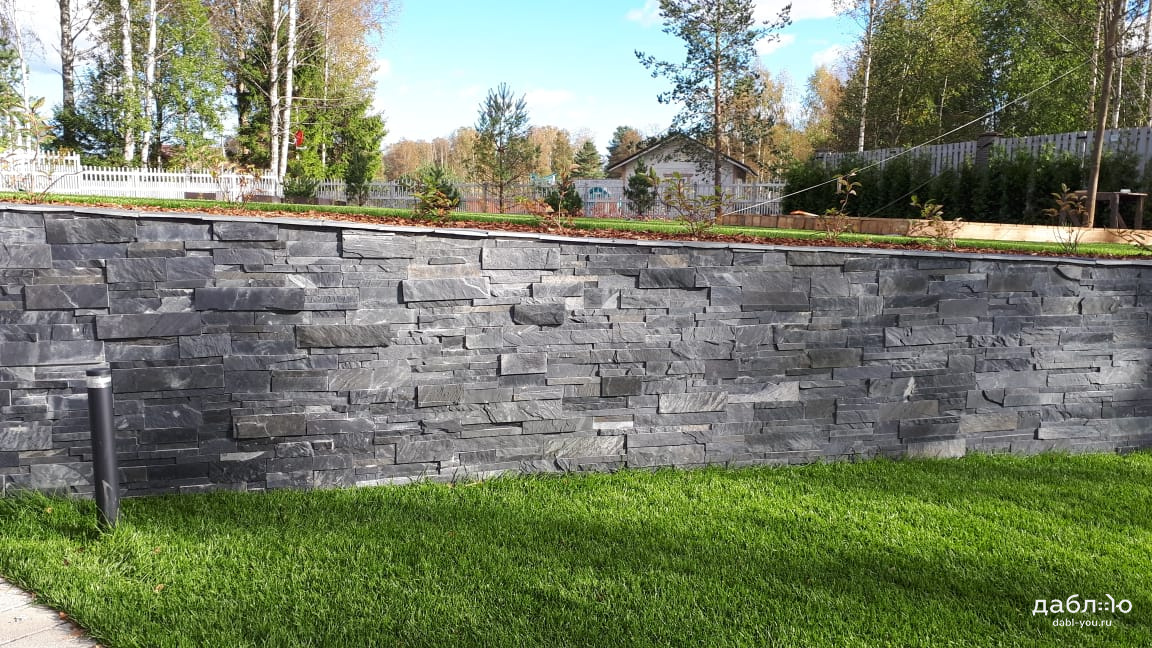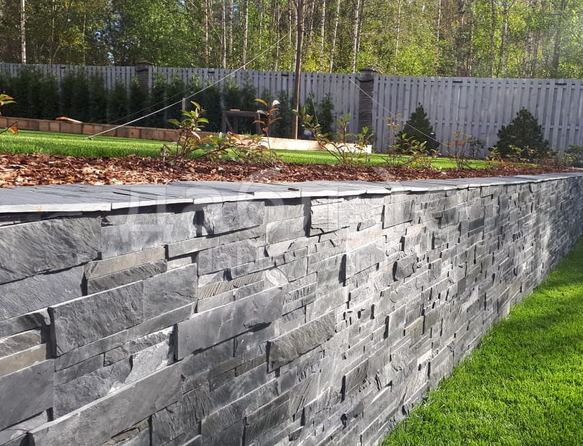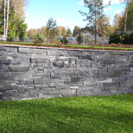 Сланец графит полоска торцованая В 30/60/90хпогон. Сланец считается экологически чистым материалом, поэтому его можно использовать как на фасаде Вашего дома, так и внутри помещений. Черный цвет камня выглядит очень изящно и благородно и легко сочетается с другими материалами.- Вес: 50 кг/м2