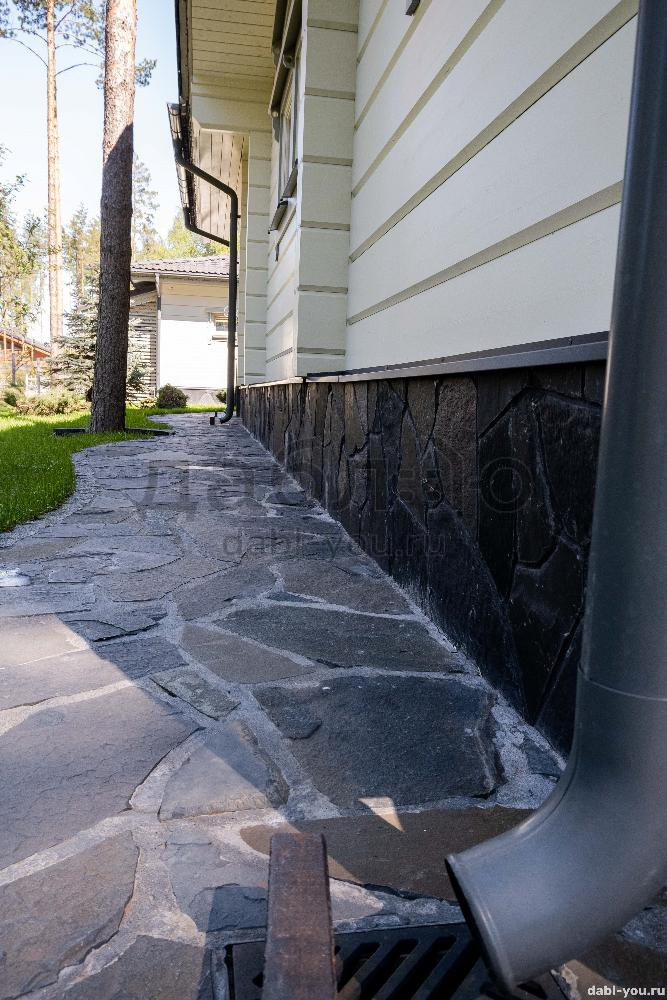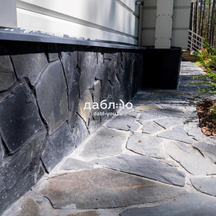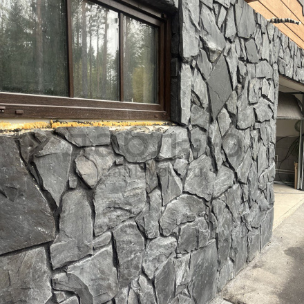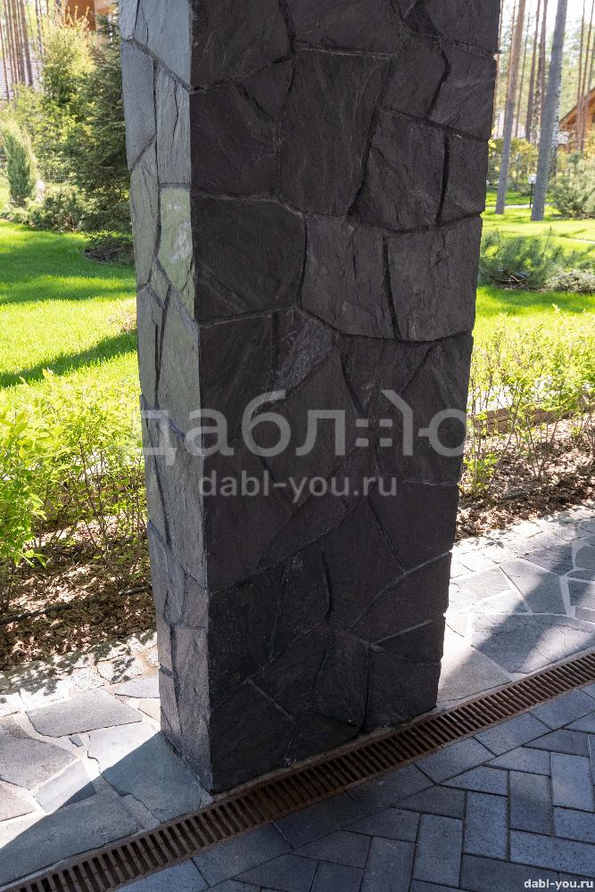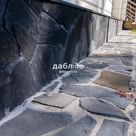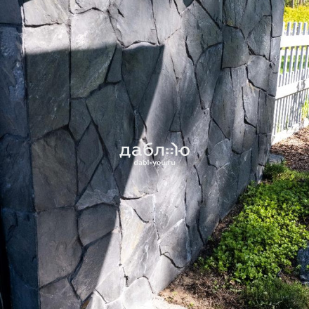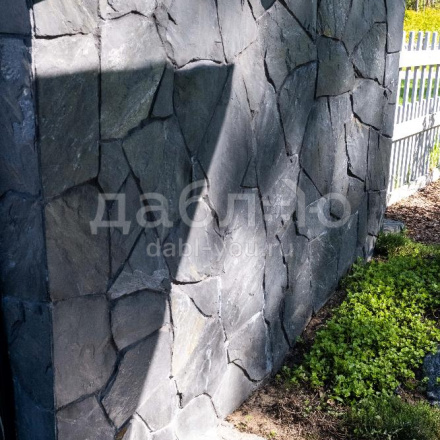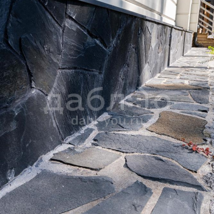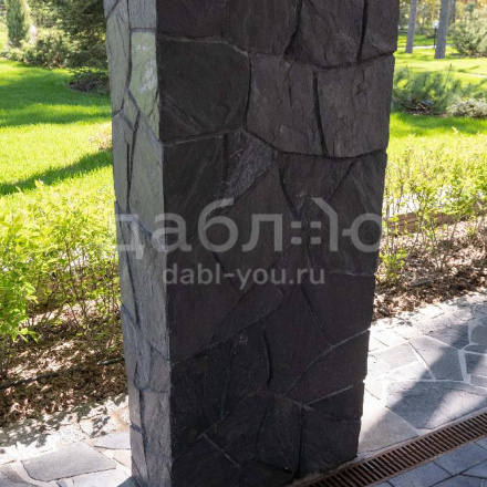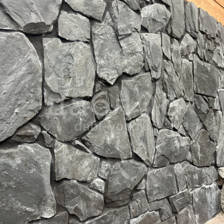 Сланец графит рваный край 10-25 мм. Сланец считается экологически чистым материалом, поэтому его можно использовать как на фасаде Вашего дома, так и внутри помещений. Черный цвет камня выглядит очень изящно и благородно и легко сочетаются с другими материалами.- Вес: 60 кг/м2