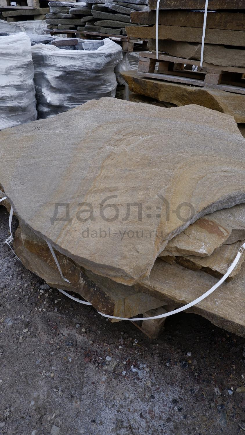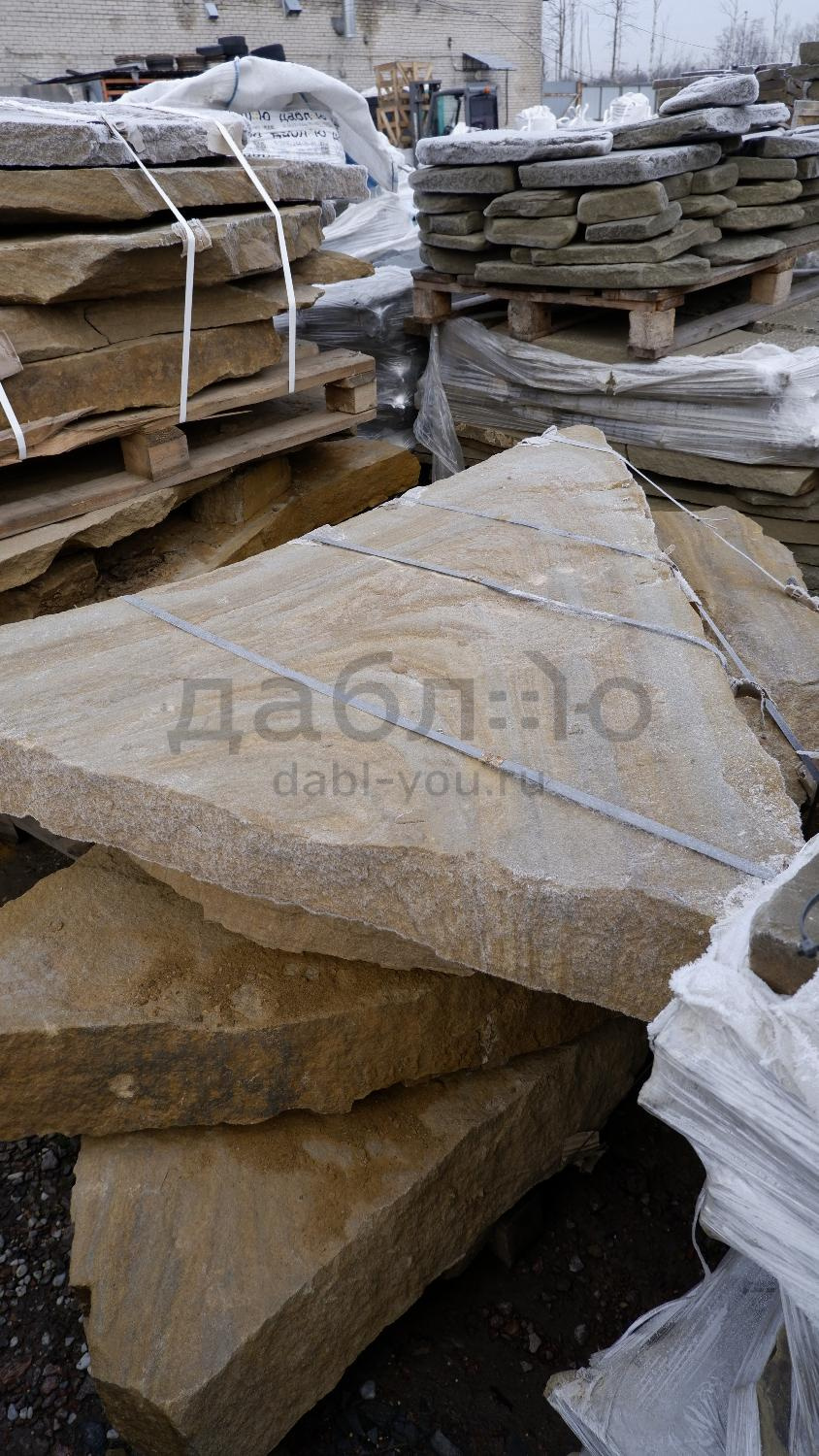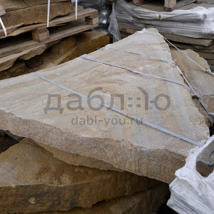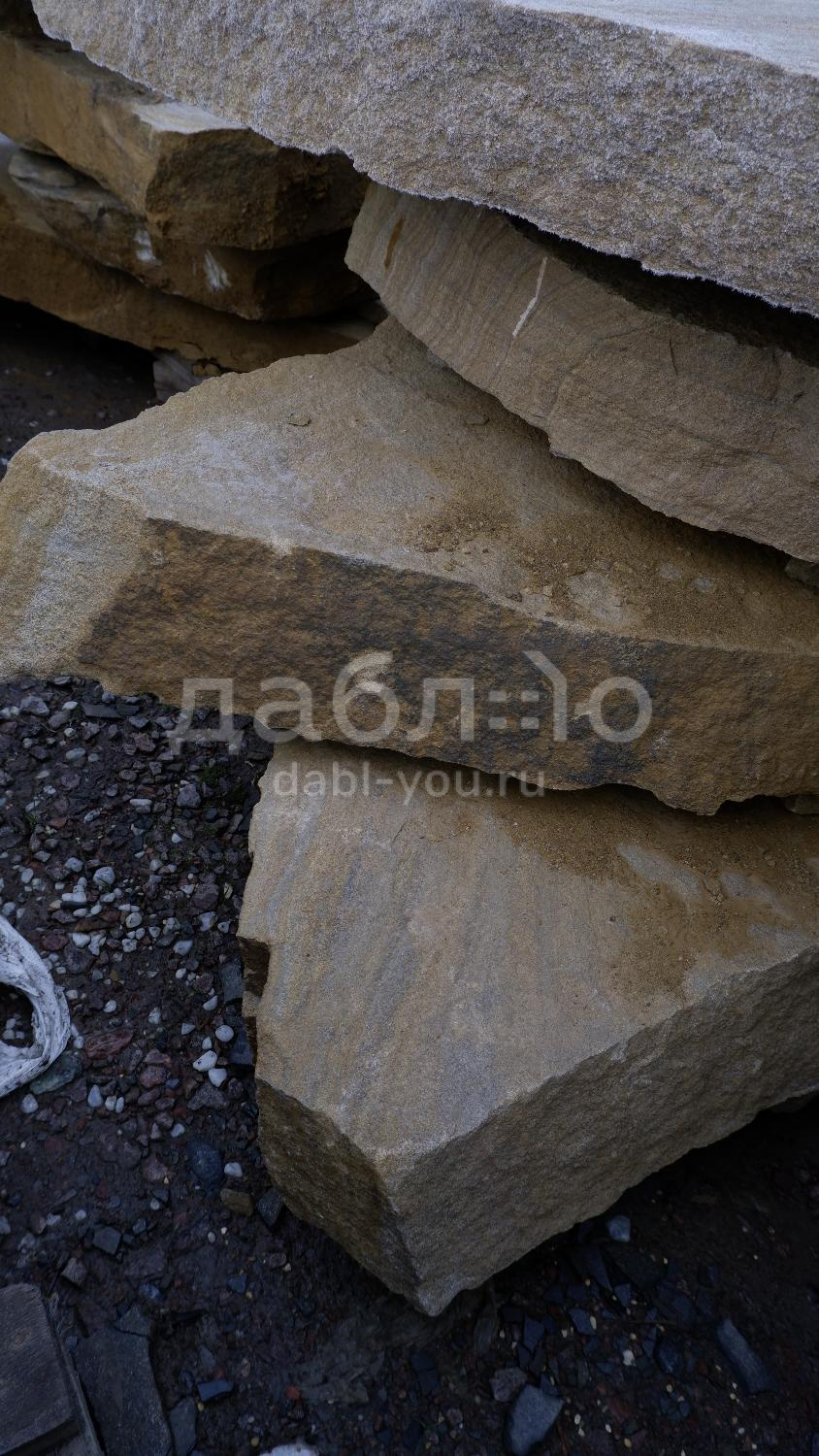 Толстомерная ступень из бежевого песчаника. Красивый материал для украшения Вашего участка. Можно использовать для создания лестницы, водопадов, водоемов.Характеристики