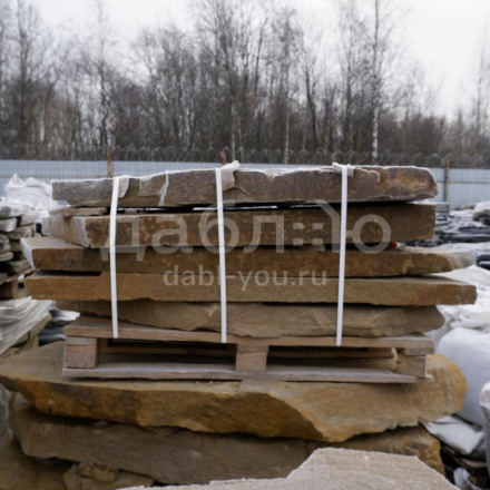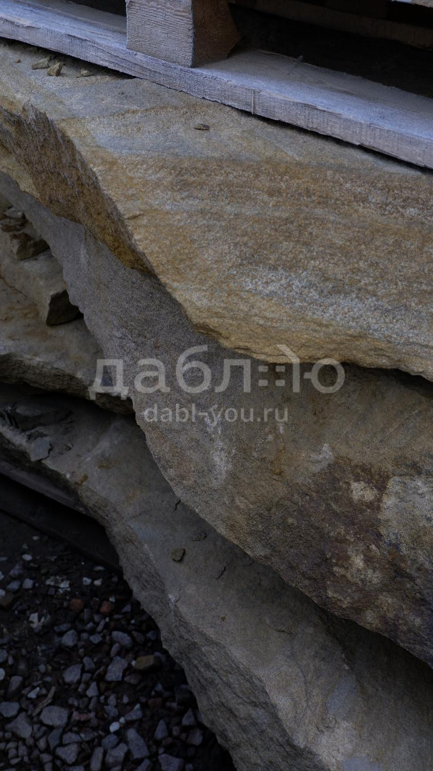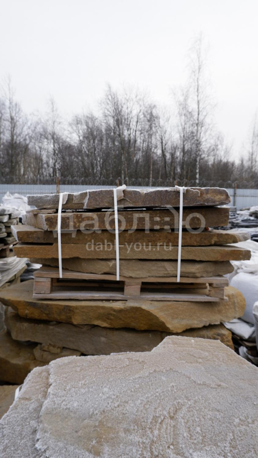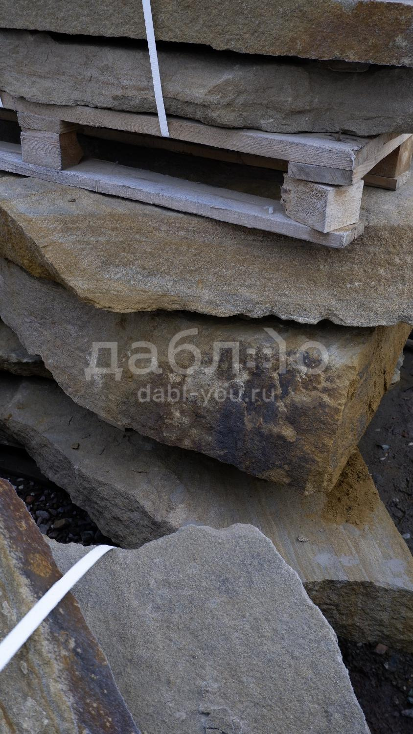 Толстомерная ступень из бежевого песчаника. Красивый материал для украшения Вашего участка. Можно использовать для создания лестницы, водопадов, водоемов.Характеристики