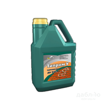 Гидрофобизатор Типром У прекрасно подходит для поверхностной обработки строительных конструкций из керамического и силикатного кирпича, бетона, ячеистого бетона, штукатурки, тротуарной плитки (на горизонтальных поверхностях не рекомендуется для клинкерной брусчатки), шифера, дерева, природного камня и других строительных материалов минерального происхождения с целью защиты от проникновения воды.Расход готового к применению раствора: 150-300 мл/м² – в зависимости от пористости обрабатываемой поверхности.