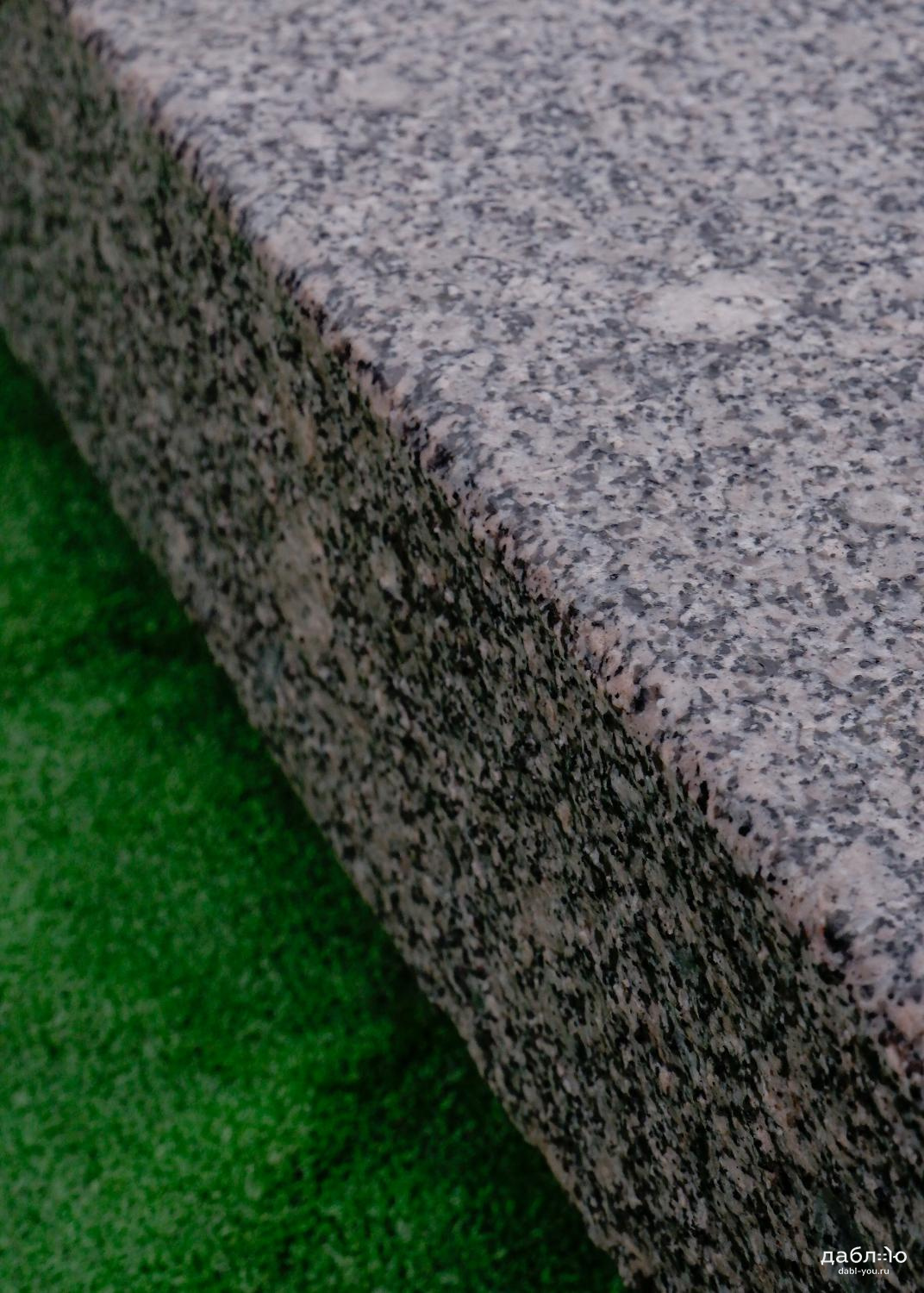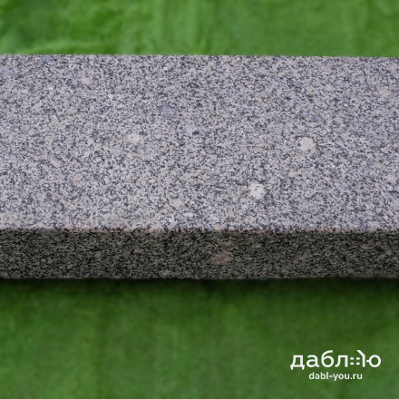 Толстомерная ступень из гранита Возрождение пиленая. Верхняя и передняя лицевая грань термообработанная, остальные грани пиленые. Гранитная ступень демонстрирует не только прочность, но и стильный дизайн, вписываясь в различные архитектурные решения.Характеристики