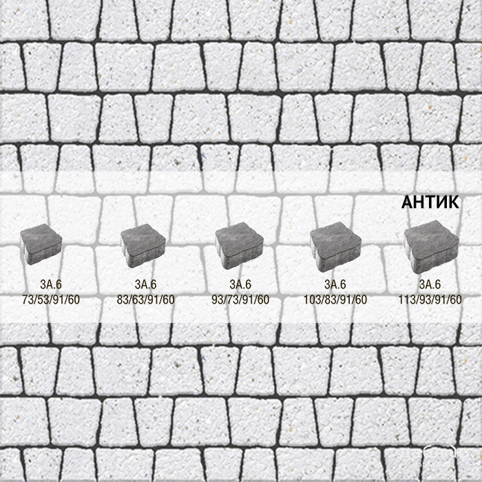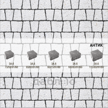 Брусчатка Выбор Антик Стоунмикс 3А.6 белый. Готовое решение для любителей старины и роскоши. В одной коллекции собрана плитка пяти различных форм, что позволяет получить интересную выкладку, в том числе и круговую. Плитка создает гладкую, почти бесшовную поверхность, благодаря чему широко применяется на пешеходных площадях.Kоличество шт/м2: 138.3