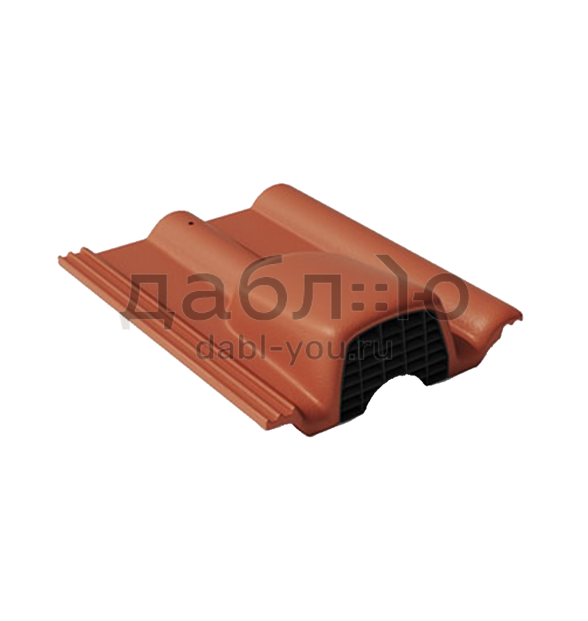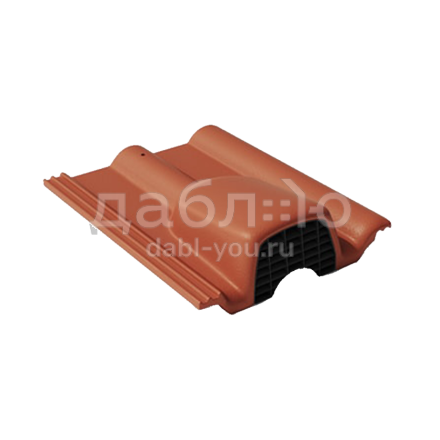 Цементно-песчаная черепица Braas Франкфуртская, вентиляционная. Применяется для усиления вентиляции кровли и утеплителя в районах ендов, примыканий, на карнизе, под коньком.Площадь сечение вентиляции: 32 см2/шт.