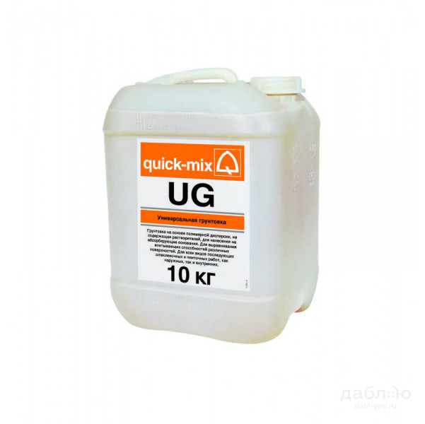Универсальная грунтовка Quick-Mix UG. Грунтовка на основе искусственных смол, не содержащая растворителей, для нанесения на абсорбирующие основания. Для выравнивания впитывающей способности различных оснований. Для наружных и внутренних работ.- Плотность 1,0 кг/л