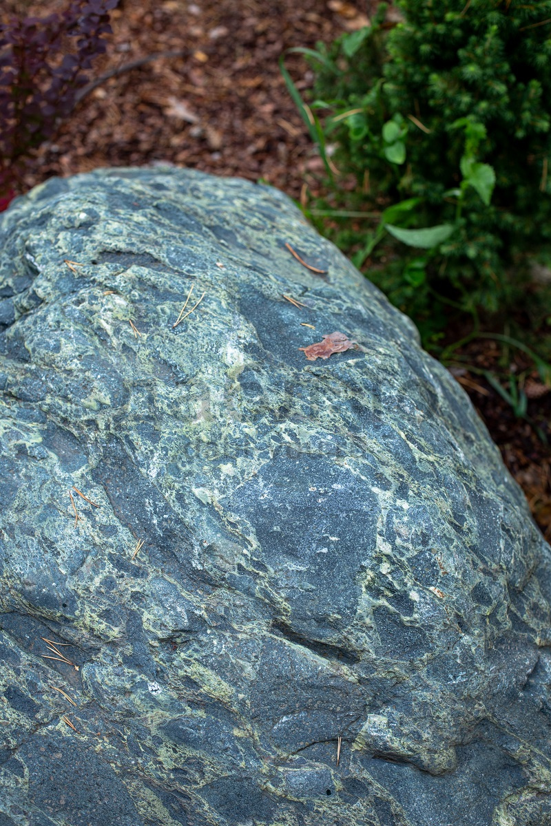 Валун диабаз речной округлый, с гладкой поверхностью, насыщенного тёмно-серого, темно-зеленого или чёрного цвета. Прекрасно сочетается с водой и зеленью, незаменим в оформлении водных объектов.Область применения: ландшафтный дизайн
