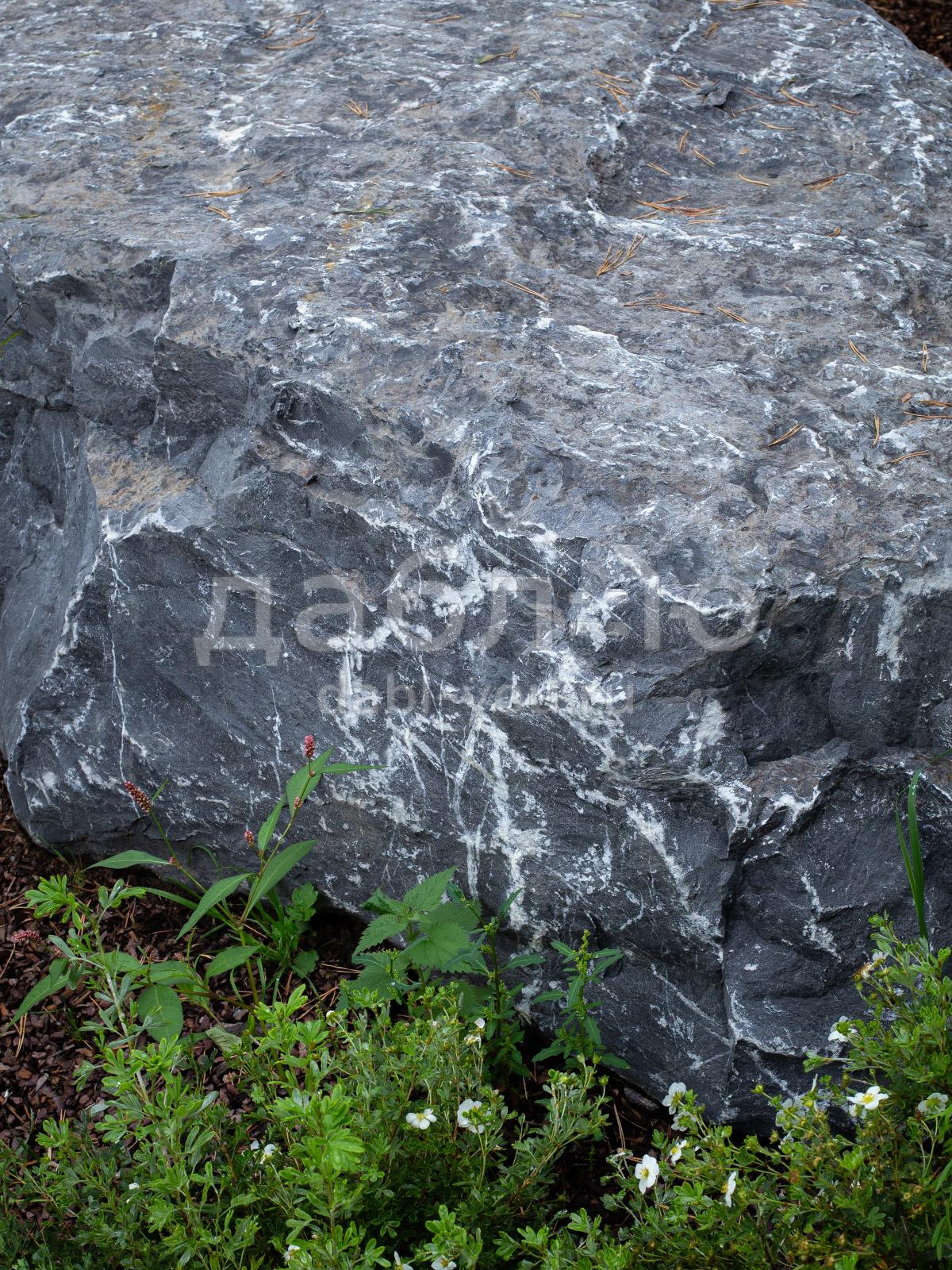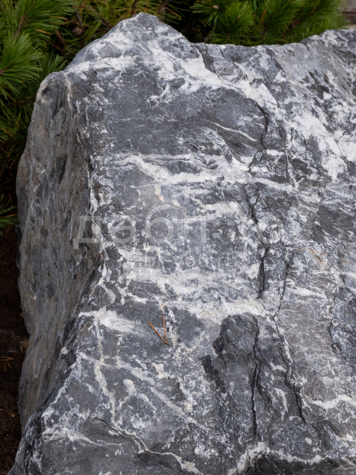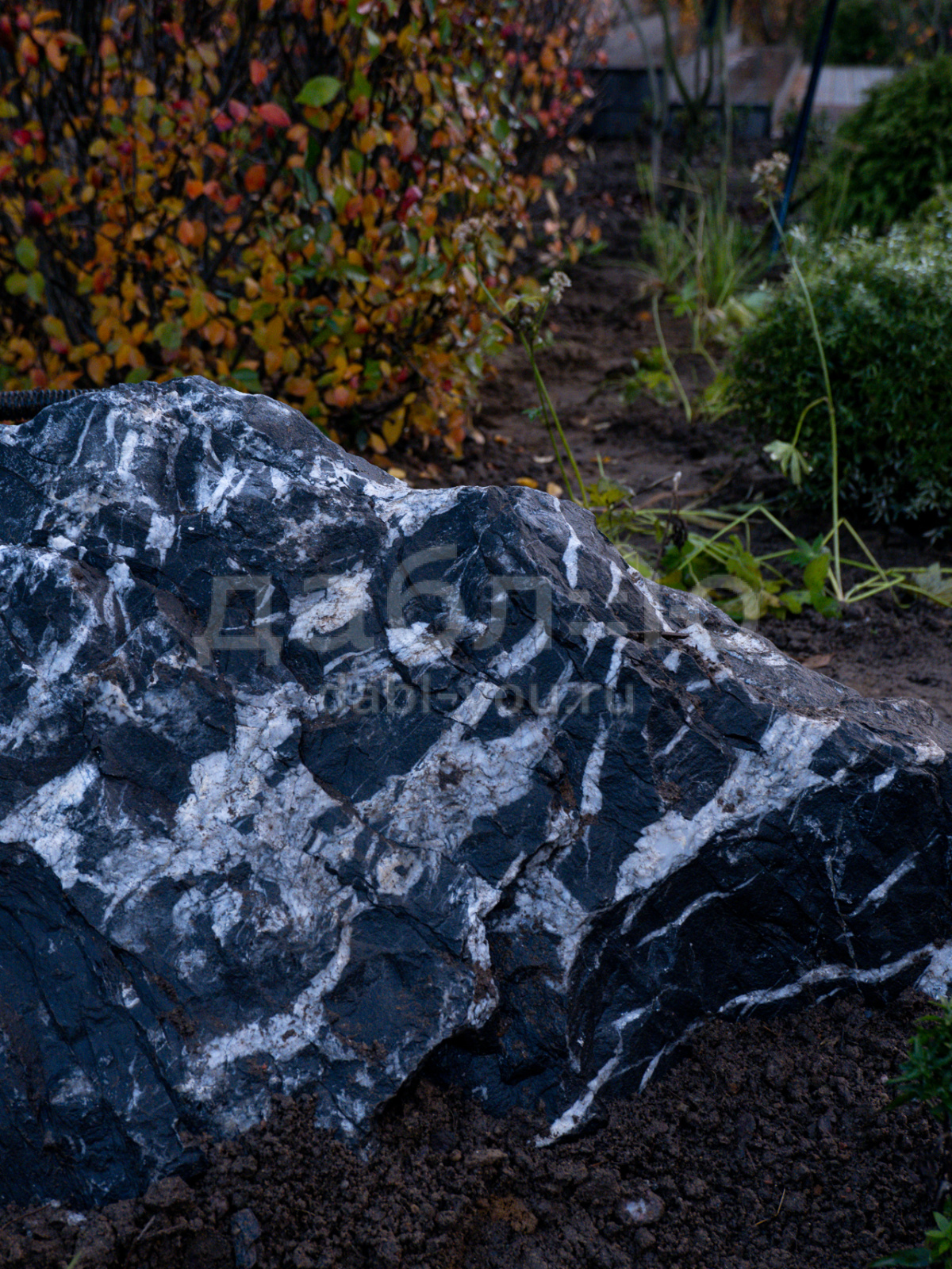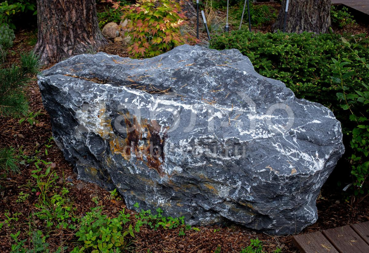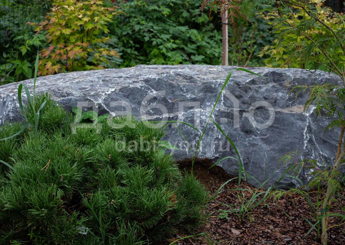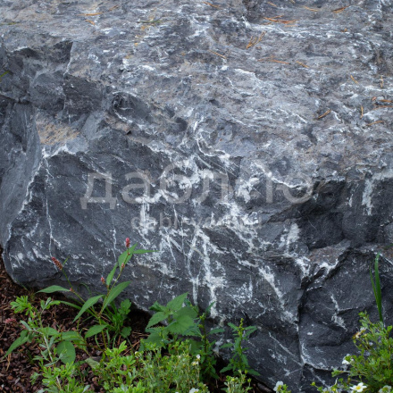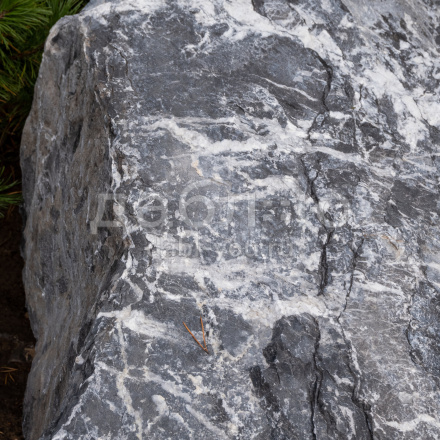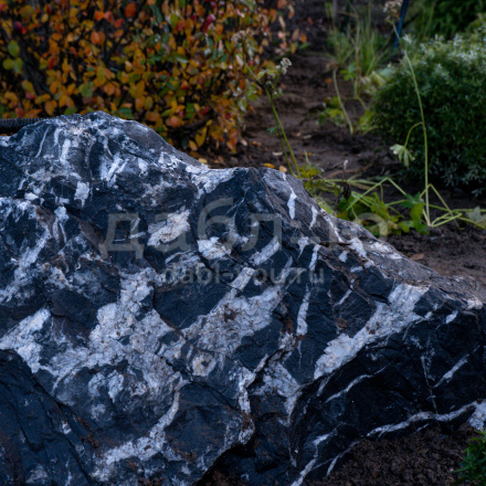 Валун мрамор черный с белыми прожилками с контрастной фактурой. Привлекает внимание ярким сочетанием чёрного и белого цветов. Используется для ландшафтного дизайна.Область применения: ландшафт