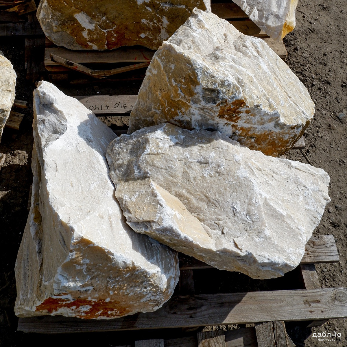 Валун Мрамор молочный. С помощью данного материала создаются цветники, каменистые сады, фонтаны и многое другое. В ландшафтном дизайне глыбы отлично сочетаются с каменной крошкой и применяются как в виде ландшафтных композиций из нескольких камней, так и в качестве отдельных объектов.Область применения: ландшафт