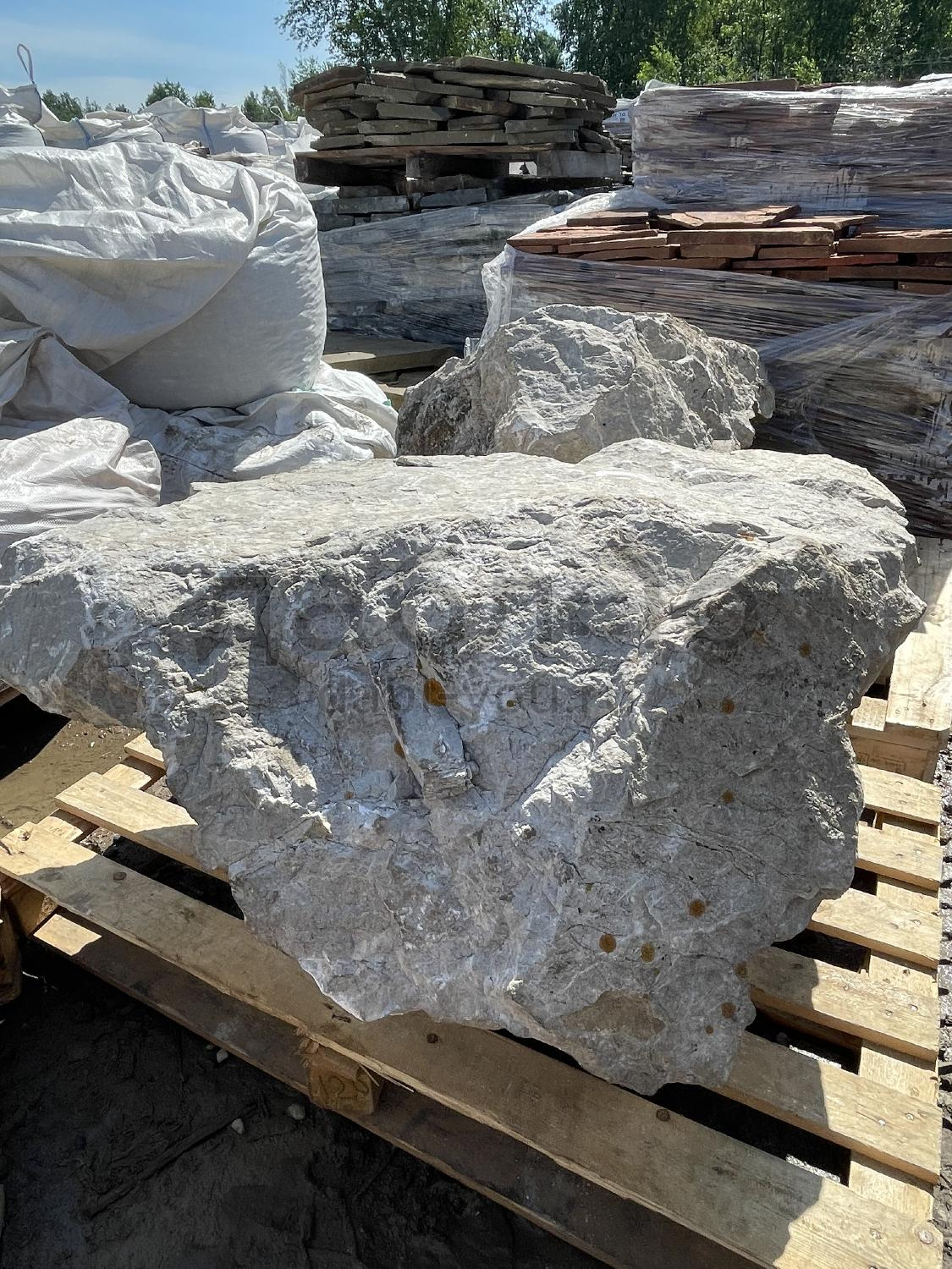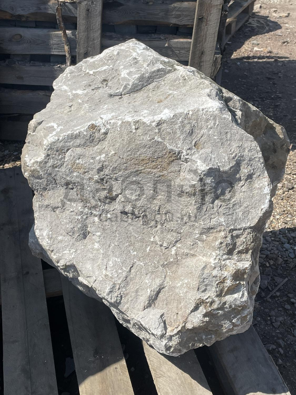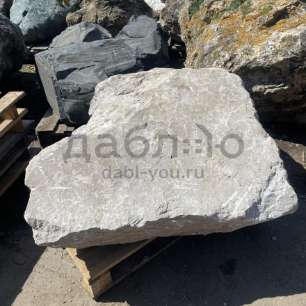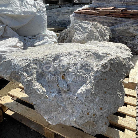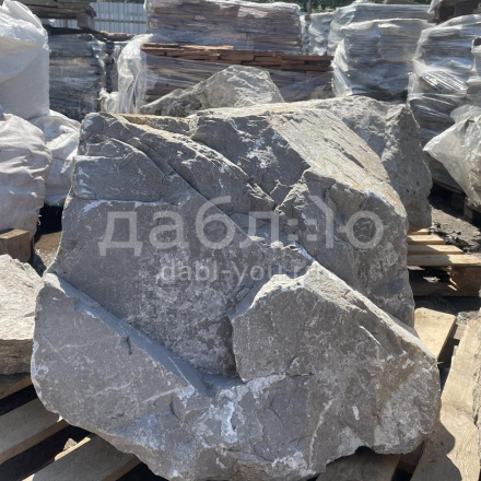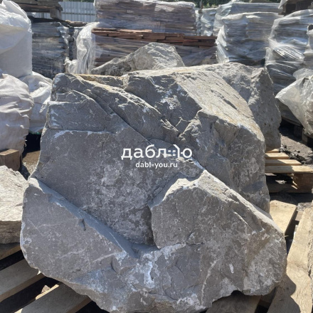 Валун мрамор серый, с неровной поверхностью и однотонным серым цветом, универсален для различных декоративных и ландшафтных задач.Область применения: ландшафтный дизайн
