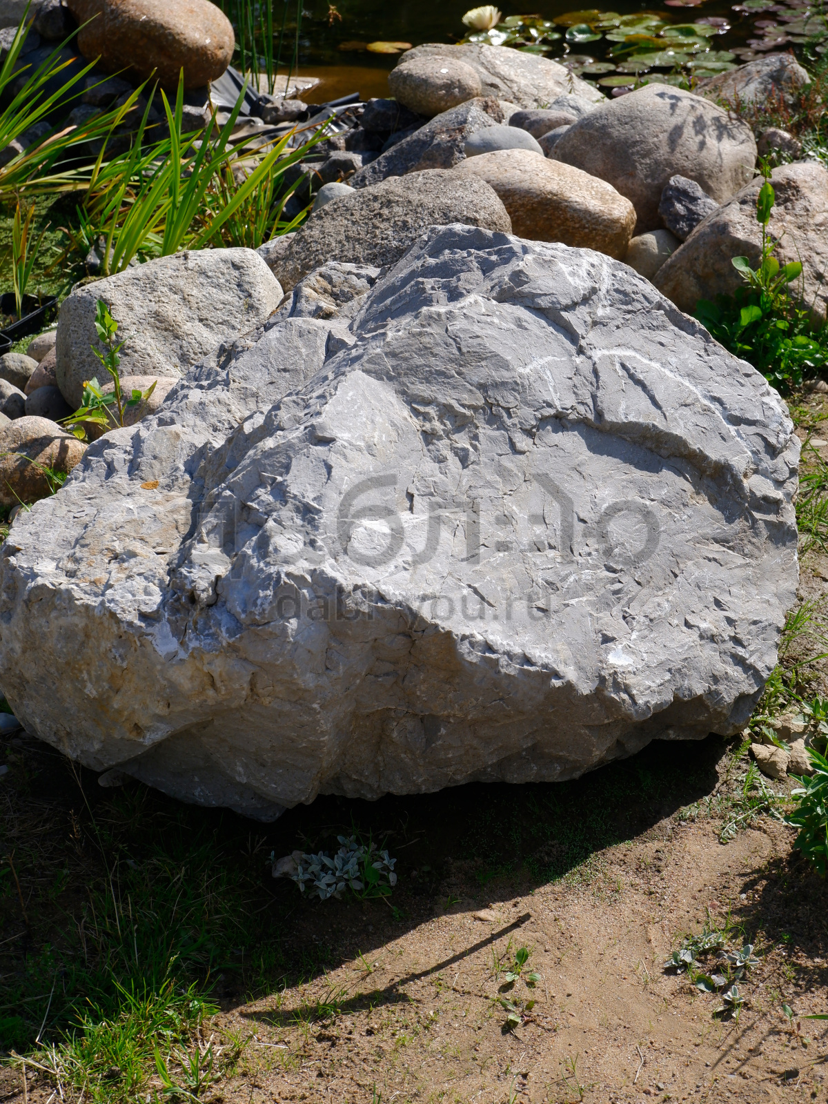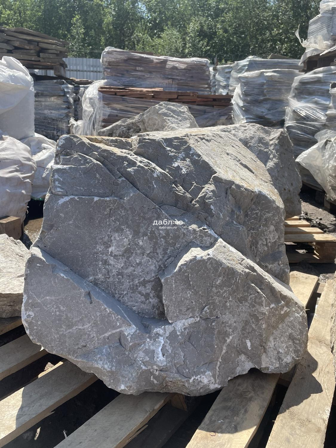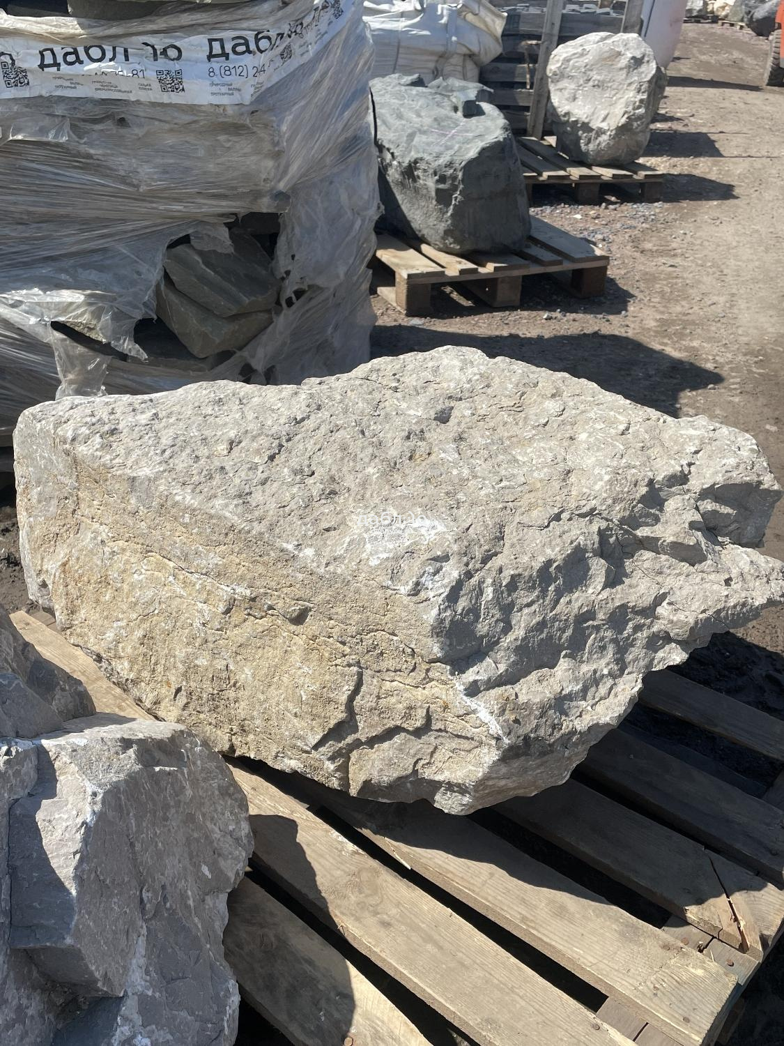 Валун мрамор серый, с неровной поверхностью и однотонным серым цветом, универсален для различных декоративных и ландшафтных задач.Область применения: ландшафтный дизайн