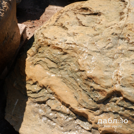 Валун Речной песчаник плоский. Благодаря своему химическому составу и физико-механическим характеристикам песчаник является очень прочным материалом. Песчаник в форме валуна применяется для ландшафт. Его приятный и спокойный зеленый оттенок подойдет для реализации множества дизайнерских решений.Фактура: валун