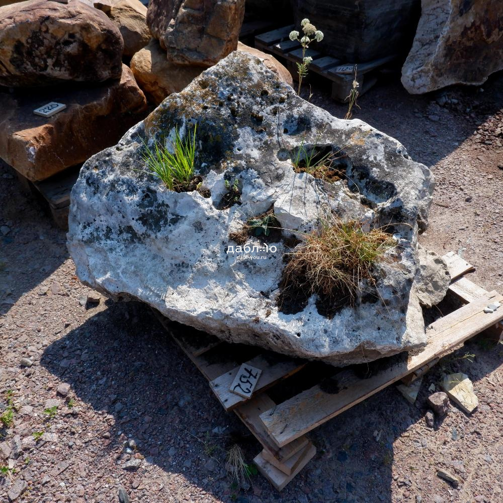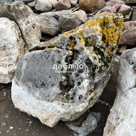 Валун выветренный известняк, с характерной округлой формой, впадинами и шероховатой поверхностью, цвет — серо-бежевый с возможными белыми вкраплениями. Отлично вписывается в природные композиции, используется в ландшафте и у водоёмов.Область применения: ландшафтный дизайн