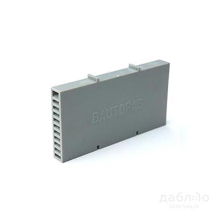 Вентиляционно-осушающая коробка "Baut" цвет светло-серый, 115x60x10 мм применяется с кирпичом следующих форматов: 250*120*65 мм, 240*115*71 мм. Подбирается в тон кладочного раствора.Вентилирует воздушную прослойку, защищая стену от осадков, выводит конденсат наружу. Препятствует проникновению насекомых и грызунов. Вентиляционные коробочки располагаются в вертикальных швах кладки с частотой 1 коробочка через каждые 3 кирпича. В зданиях до 2-х этажей - 2 ряда кладки (первый ряд и последний). В многоэтажных зданиях - дополнительно 1 ряд каждые 2 этажа.