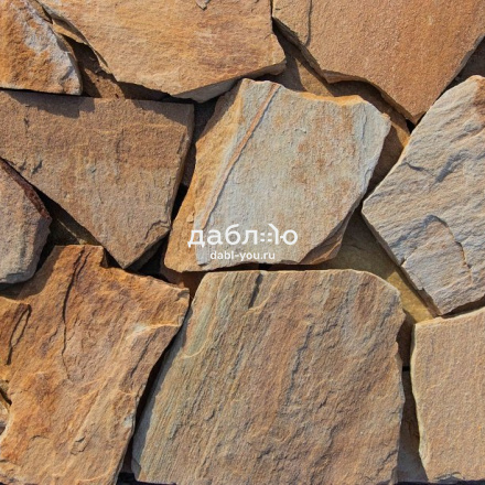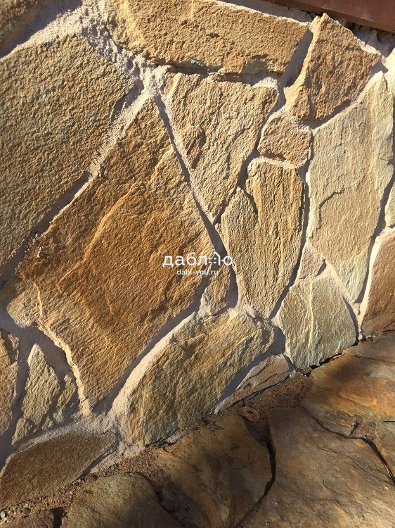 Златолит желтый рваный край 15-25 мм. Используется как облицовочный материал для фасада и цоколя дома. Теплый цвет камня позволяет легко его сочетать с другими материалами.- Вес: 55 кг/м2