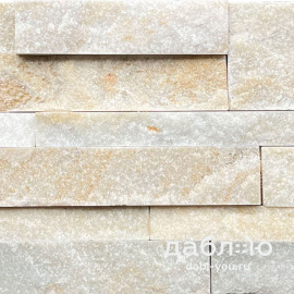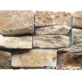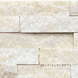 Панели из натурального камня представляют собой единую плитку (панель) размером 150 х 600 мм, 180 х 350 мм, 100 х 360 мм, 600 х 200 мм, состоящую из склеенных между собой фрагментов (кусочков натурального камня). Каждый фрагмент имеет неровную поверхность, что позволяет передать так называемый «объем» природного материала.