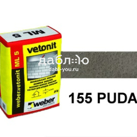 Цветной кладочный раствор вебер.ветонит МЛ 5 Пудас 155 (серый), 25 кг