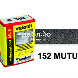 Цветной кладочный раствор вебер.ветонит МЛ 5 Мутус 152 (темно-серый), 25 кг