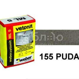 Цветной кладочный раствор вебер.ветонит МЛ 5 Пудас 155 (серый), 25 кг